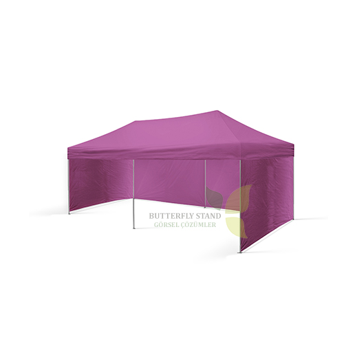 Gazebo Tente 3×6 Lila Tavanlı, Gazebo Tente 3×6 Lila Tavanlı + Arka Tam Duvarlı, Gazebo Tente 3×6 Lila Tavanlı + Arka Tam Duvarlı + Yan Tam Duvarlı